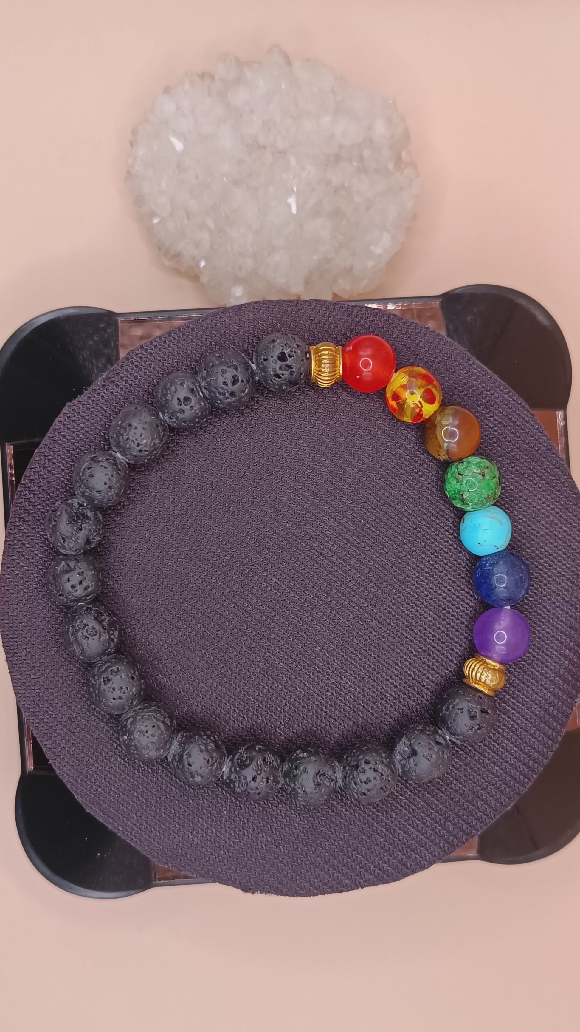 Introducing our Certified 7 Chakra With Lava Stone Bracelet, a stylish fusion of balancing chakra energies and grounding lava stone. Perfect for both men and women seeking harmony and style in one accessory.