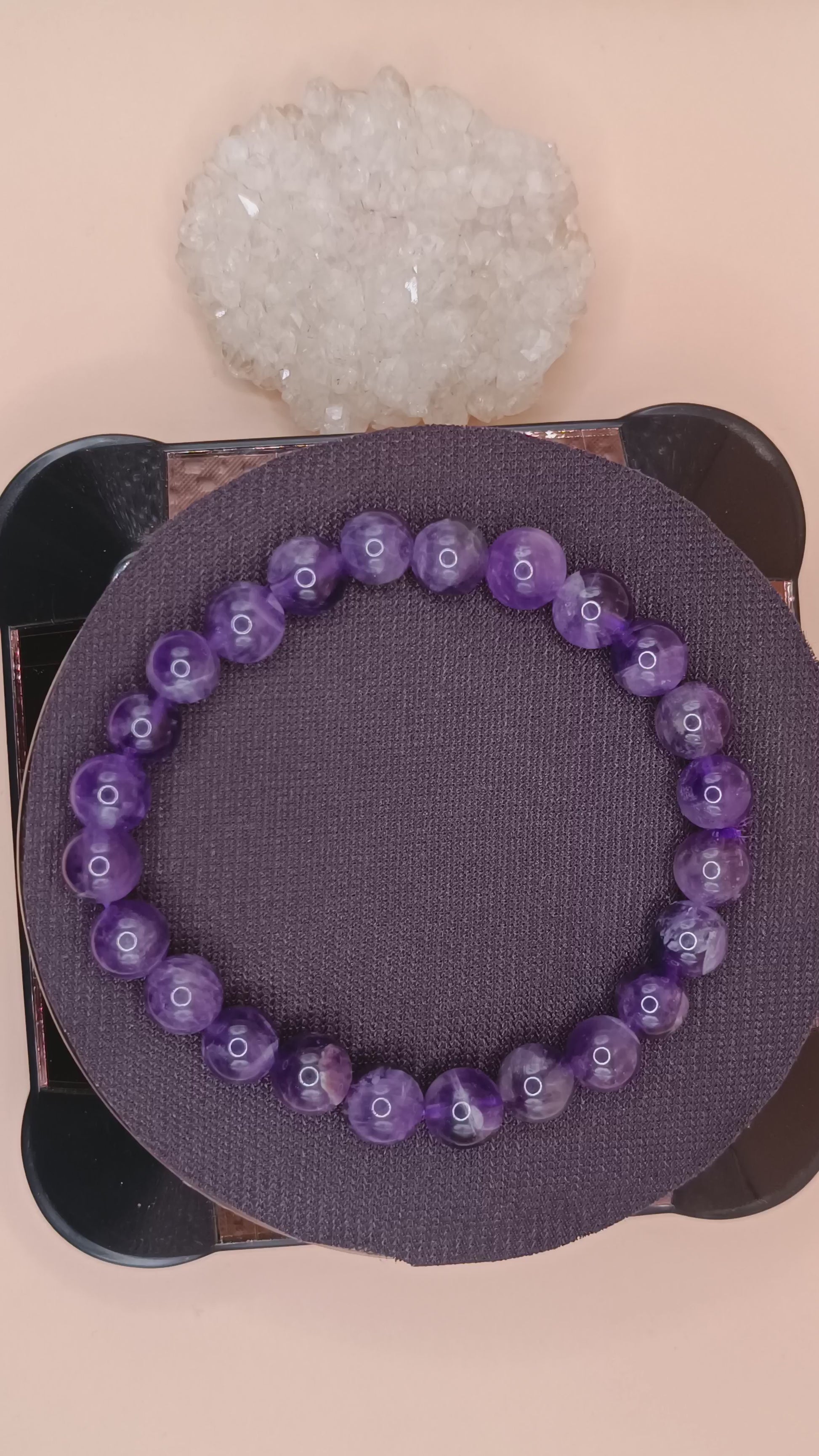 Unleash the serene energy of our Certified Amethyst Crystal Bracelet, meticulously crafted for both men and women. This elegant accessory features high-quality, genuine amethyst stones known for their deep, mesmerising purple hues, each bead exuding a calm and soothing aura. Traditionally celebrated for its healing properties, amethyst is believed to promote clarity, tranquillity, and protection.