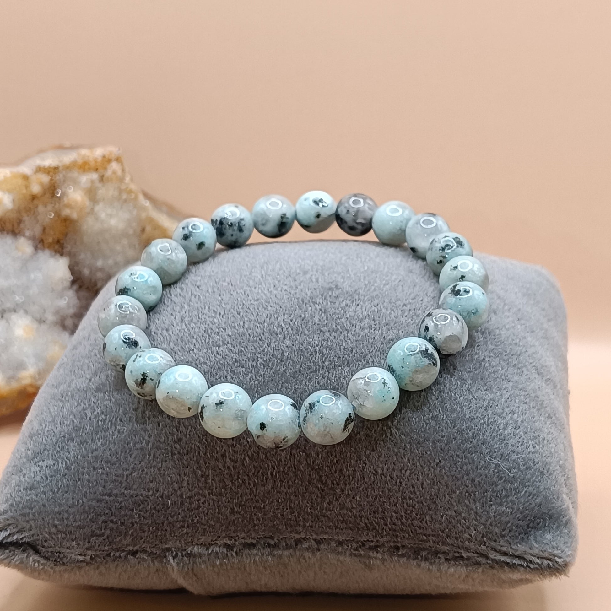 Introducing our Certified Kiwi Moonstone Bracelet, designed for both men and women. This beautiful bracelet features genuine kiwi moonstone beads, known for their unique speckled appearance and calming energy. The stones are strung on a durable elastic cord, ensuring a comfortable and adjustable fit. Perfect for adding a touch of elegance and tranquility to any outfit.